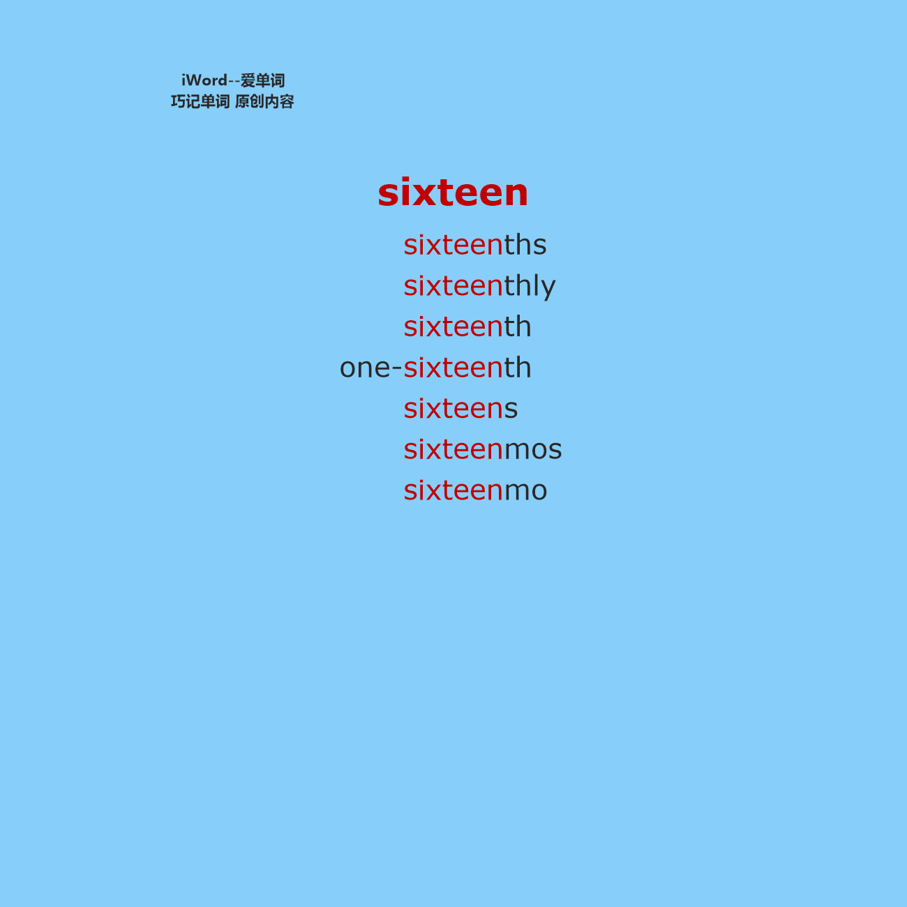 巧记主词:sixteen